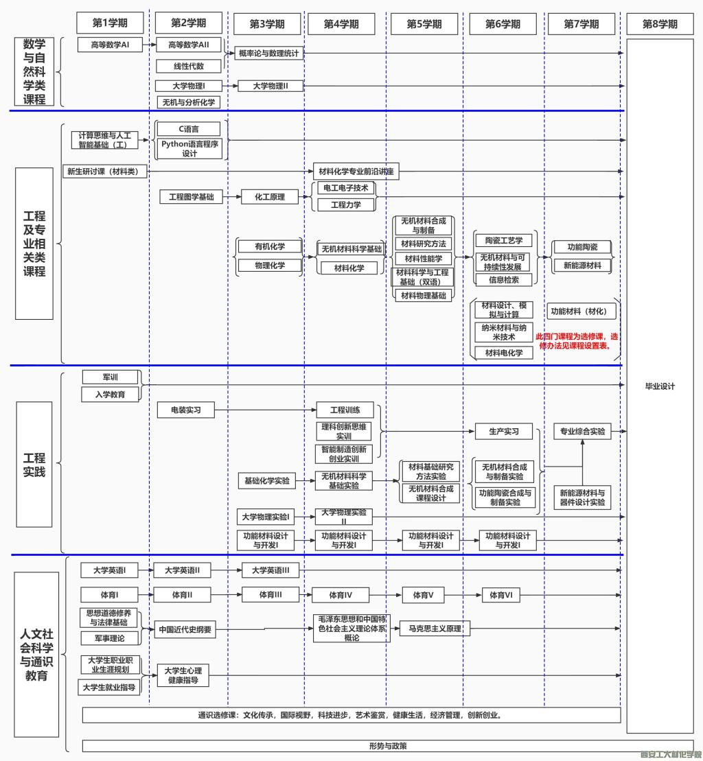 纳米材料科学技术、能源材料科学技术、环境材料科学技术、信息材料科学技术、生物材料科学技术、先进结构材料技术,将完善学生的材料-结构-器件的知识结构,形成材料依托器件要求发展的理念。