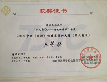 中国(国际)传感器创新大赛三等奖 第九届 “挑战杯” 陕西省大学生课外学术科技作品竞赛三等奖