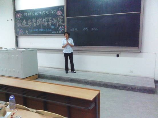 组织专家教授为09级毕业班学生做就业与考研专题讲座,对他们在就业与考研中专业方向的选择和注意事项进行专门指导。开设讲座的专家教授有材化学院党委书记张忠老师,材化学院副院长、陕西省首批二级教授、博士生导师、陕西省 “三五人才”坚增运老师,材化学院院长助理陈卫星教授。