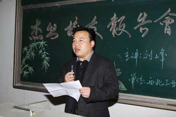 92级金属材料专业刘峰校友为材化学院2012级新生做了一场“从西工学子成长为国家杰青的历程和感悟”的专题报告。报告会由材化学院坚增运教授主持,陈卫星教授、王国栋老师等出席了报告会。