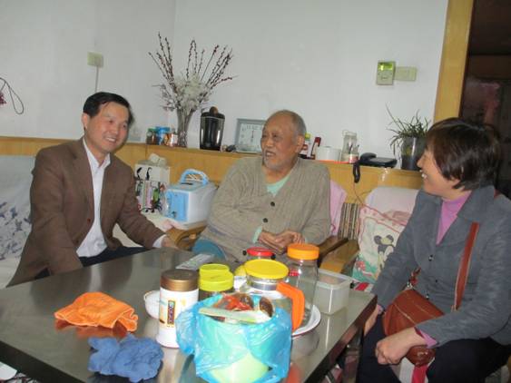 2013年10月24日,材化学院院长李建平、党委书记张忠、工会主席夏峰带着学院全体教工的祝福走访慰问了原材料系党总支书记吕富安,向他介绍了材化学院现状和三十多年来建设发展取得的成就。感谢他作为材料系老领导对当年材料系的筹建和早期发展做出的贡献,并祝愿他健康长寿。