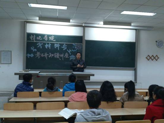 2013年11月20日,材化学院在教学楼2栋306教室举行,材化学院院长助理、环境与化工系主任陈卫星教授主讲,学院11级高分子专业100多人参加。