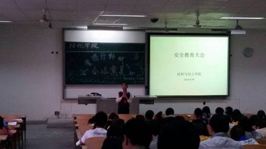 在教1-203开展安全教育大会,院党委副书记张治宏老师为同学们进行安全教育,材化学院11、12、13级学生接受了安全教育。
