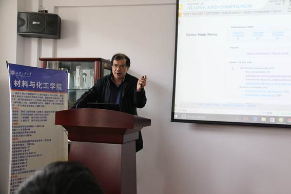 2016年12月26日至27日,浙江大学潘洪革教授来快猫 就学术论文撰写、项目申报、人才培养、储能材料等方面进行了为期两天的讲学。26日,雷亚萍副校长全程参加了此次活动,并感谢潘洪革教授为快猫 学科建设、人才培养、科学研究等方面所做的贡献。27日上午,张君安副校长出席并参加了人才培养座谈会,表示潘洪革教授渊博的知识和丰富的社会经历将给快猫 老师和学生们留下宝贵的财富。