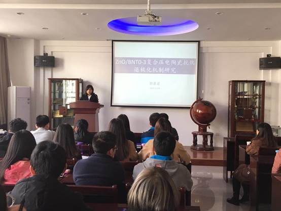 师生做了题为“ZnO/BNT 0-3复合压电陶瓷抗热退极化机制研究”的精彩报告,本次报告会由研究生院副院长惠增哲教授主持、部分老师和学生参加了本次报告会。