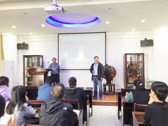 作题为Invisible-light emitting persistent phosphors and upconversion charging techniques的学术报告。报告会由惠增哲教授主持,快猫