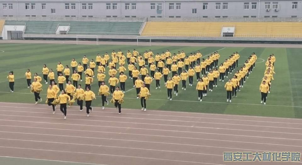 学生的青春活力,得到了台上评委老师和台下同学们的阵阵掌声和欢呼声。音乐结束,“菁华如风,气势如虹,看我材化,笑傲西工”的口号响彻整个操场,同时队伍集合摆出花样阵形,为整个比赛画上圆满的句号。最终,快猫