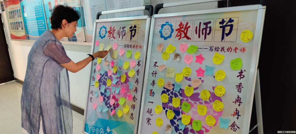 2020年9月10日,是第36个教师节材化学院在3楼设置了“教师节——写给我的老师”留言板,邀请同学们写下对自己老师的教师节祝福