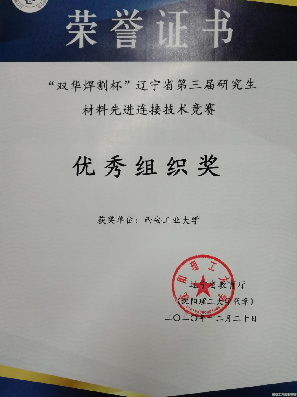 经过网络远程评审、研究生答辩、专家现场评分等环节,最终由快猫 快猫 高培虎、马爱洁老师指导,研究生陈白阳、付瑞涛、曾圣聪共同完成的作品《铝合金电池托盘产品焊接工艺方案》荣获三等奖。快猫 获得“优秀组织奖”称号。