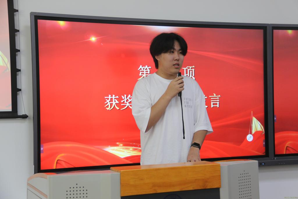 优秀辅导员助理张思雨和优秀学生干部代表张新依次上台发言,他们表达了对于此次表彰大会能获此荣誉的感谢,向大家讲述了自我成长变化的历程,并表露了要再接再厉、再创辉煌的决心。