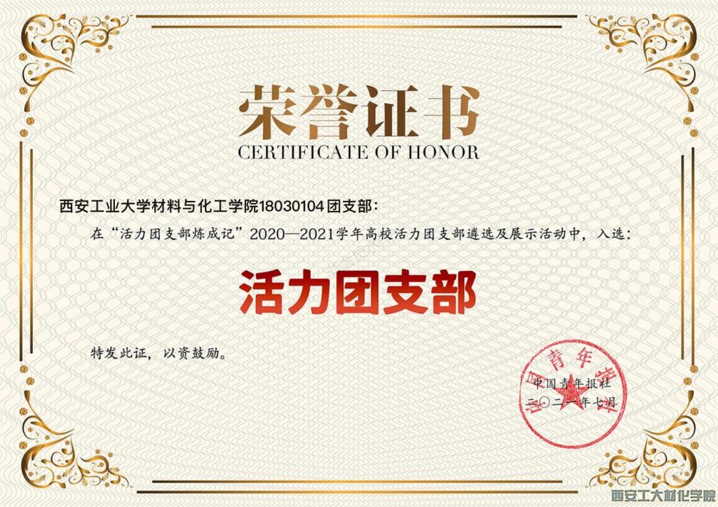 “三好班级”、“五四红旗团支部”、陕西省“2020—2021学年高校活力团支部”等多项荣誉称号。