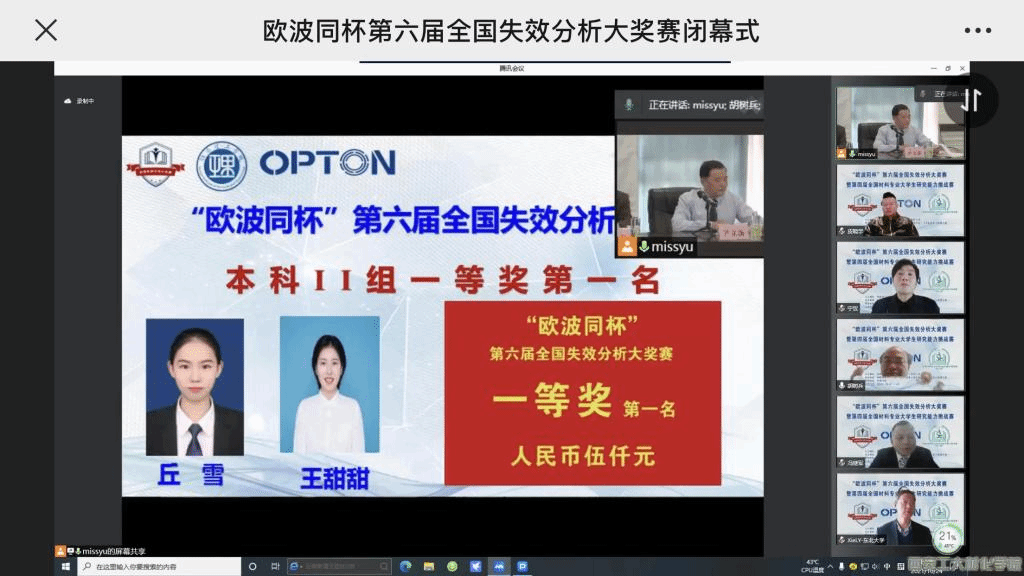 本届比赛由欧波同(中国)有限公司与湖南理工学院共同主办;中国机械工程学会失效分析分会、中国机械工程学会可靠性工程分会、中国机械工程学会理化检验分会、中国机械工程学会材料分会协办;牛津仪器纳米分析部赞助,《理化检验•物理分册》支持。来自华中科技大学、东北大学和中南大学等三十多所高校的本科生、研究生以及企业、研究所的专业技术人员所组成的80多支队伍参加了本次大赛,参赛内容具有广泛的覆盖面,涉及火电、风电、高铁、汽车、石化、化工、冶金、钢铁、建筑、航天、军工等12个工程技术领域。大奖赛分为初赛、复赛和决赛三个阶段。初赛已于5月29日、5月30日、6月5日、6月6日在线上进行。
