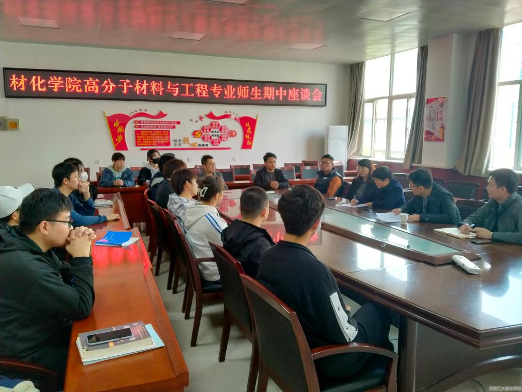 于工3—410召开高分子材料与工程专业期中教学座谈会。会议由高分子教研室主任吴新明主持,专业教师侯永刚、朱生勃、牛小玲、王岩、田敏以及18名不同年级高分子专业学生参加会议。