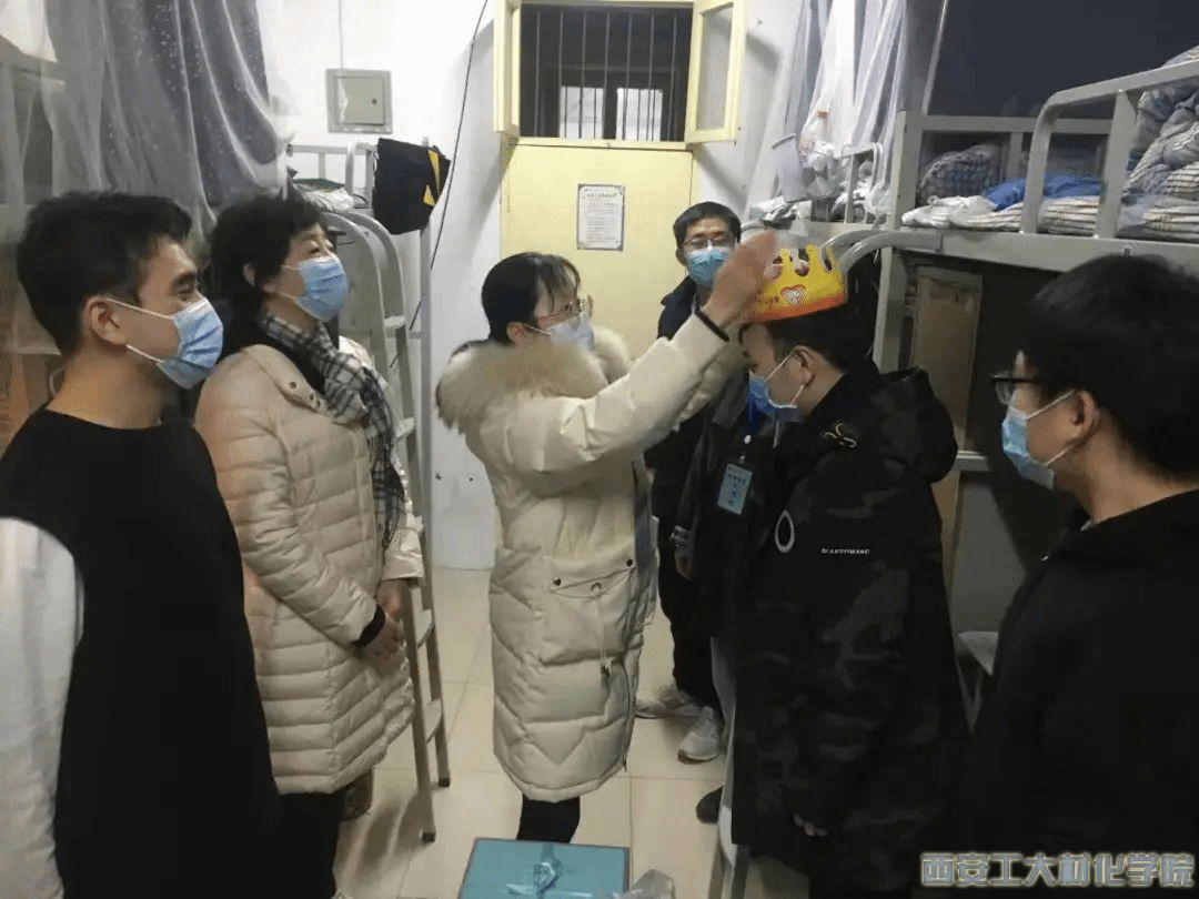 党委为学生谭学达举办了一个特殊的生日仪式,定制了生日蛋糕,送去了师生祝福。