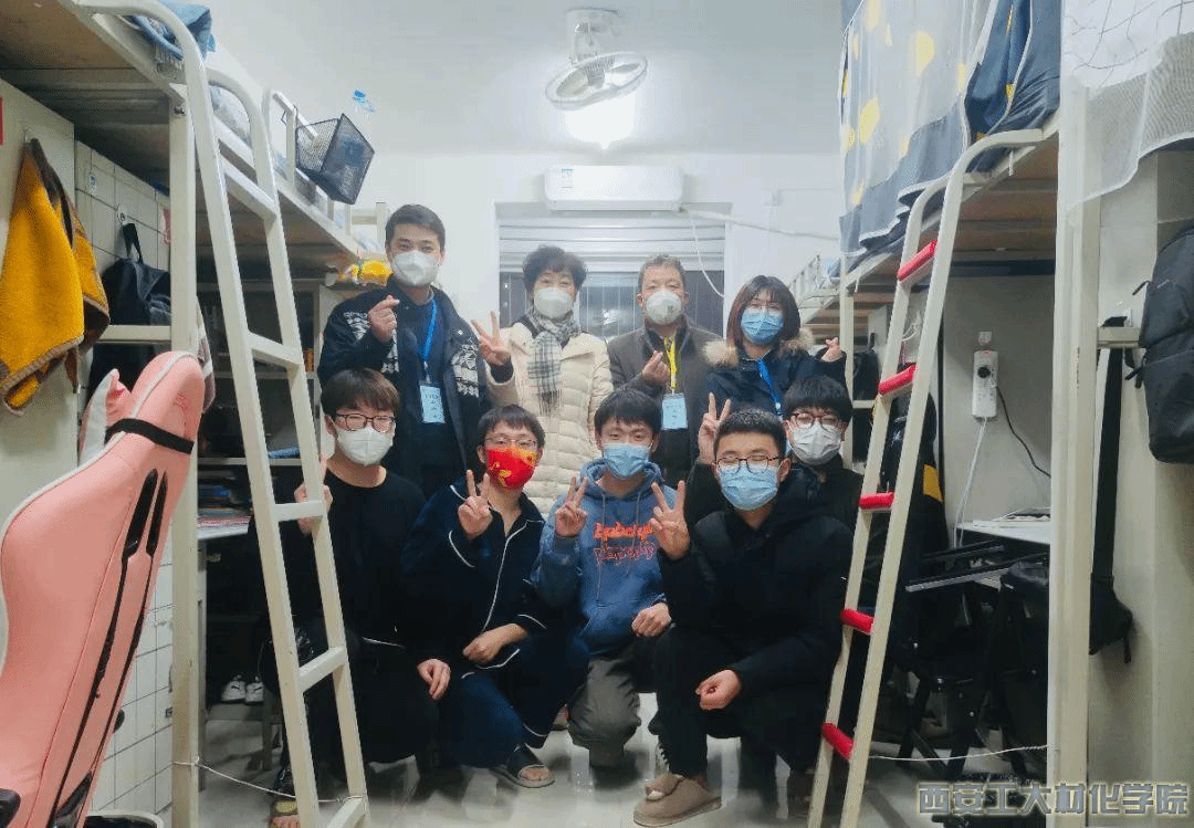 党委书记呼晓青、副书记陈卫星和五名本科辅导员、一名研究生干事立即回家收拾好行李,入住学院办公室和学生宿舍。八位老师驻扎学校后,逐一走访了学院所有学生宿舍,与学生谈心谈话,深入了解学生思想动态,密切关注学生身心健康状况,耐心解答疫情防控政策、期末考试、学校物资保障等问题,对学生遇到的实际困难给予及时帮助;并于考研、新年和新学期前夕深入走访学生宿舍,为学生送去暖心关怀和新年礼物。