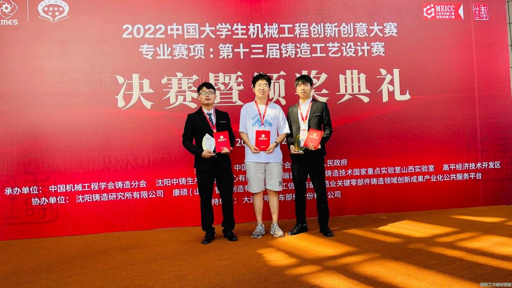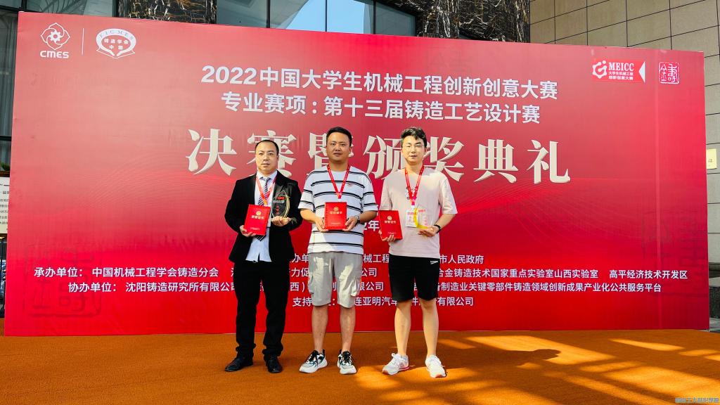 本科生组熊海涛、杨洋、田呁龙、刘晨宇团队荣获二等奖;田茜、金宇琪、钱科、陶鸿团队荣获三等奖;研究生组杨明年、马皓欣、曹旭团队荣获二等奖;赵磊、吴翰丰、王博团队荣获三等奖,同时,以上14位同学均获得见习铸造工程师资格证书。