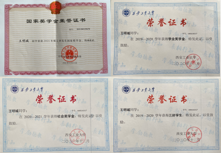 王明城同学在研究生期间认真科研,硕果累累,在研究生生涯中勾勒出一幅幅美丽的画卷。以此为始,扬帆起航,相信该同学会砥砺奋进,继续前行,在工作学习中取得更为优异的成绩。