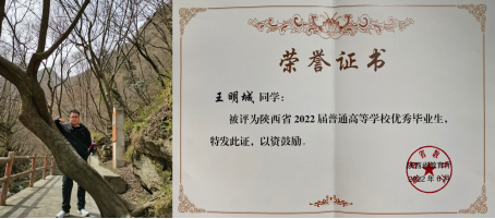 王明城同学顺利完成了硕士阶段的学习,即将踏入北京化工大学攻读博士,开启人生新征程。王明城同学经过研究生阶段的学习和锻炼,在毕业之际荣获省级优秀毕业生的荣誉称号,为研究生阶段的学习画上了圆满的句号。