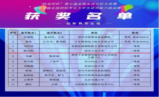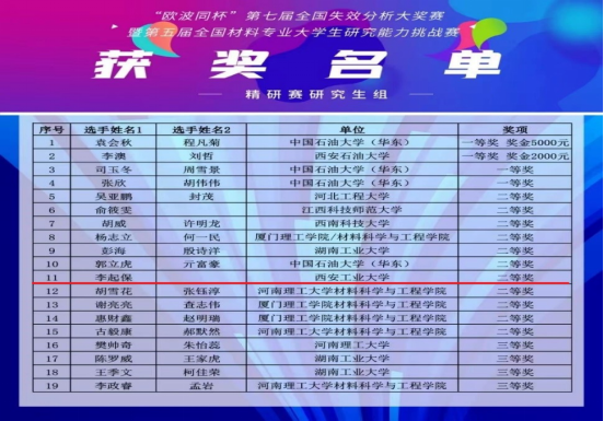 在本次失效大赛过程中,材化学院李起保同学获得了精研赛研究生组二等奖,陈白阳同学获得了创新赛专业组二等奖。高培虎老师获得了优秀指导教师称号。