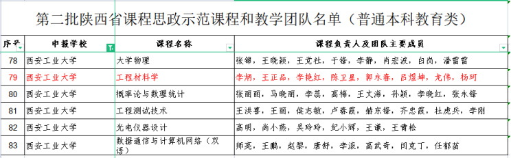 李炳副教授及其团队申报的《工程材料学》课程项目成功获批陕西省课程思政示范课程和教学团队。