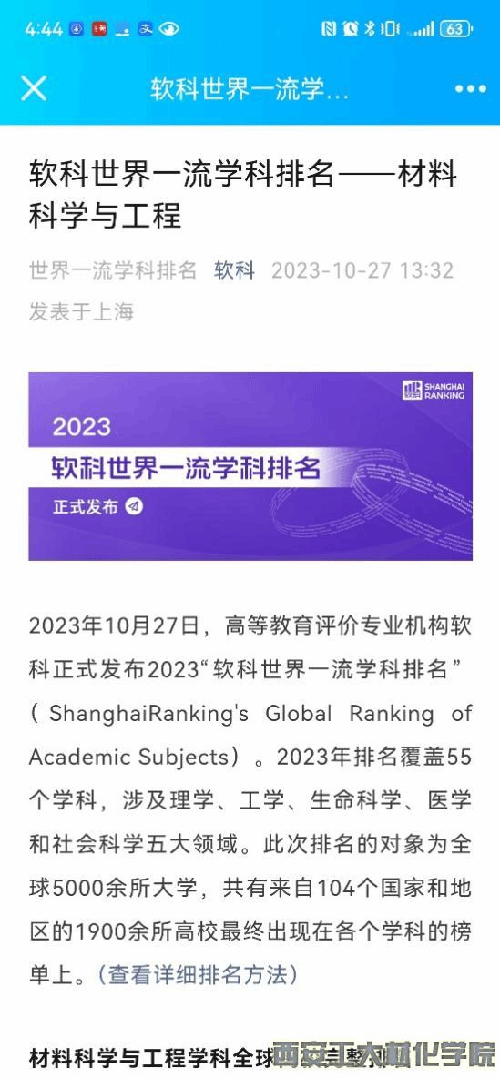 据2023年10月27日公布的软科世界一流学科排名——材料科学与工程,快猫 材料学科软科世界排名395名,全国排名第144,陕西省排名第6。比去年的世界排名至少提升了100多名。