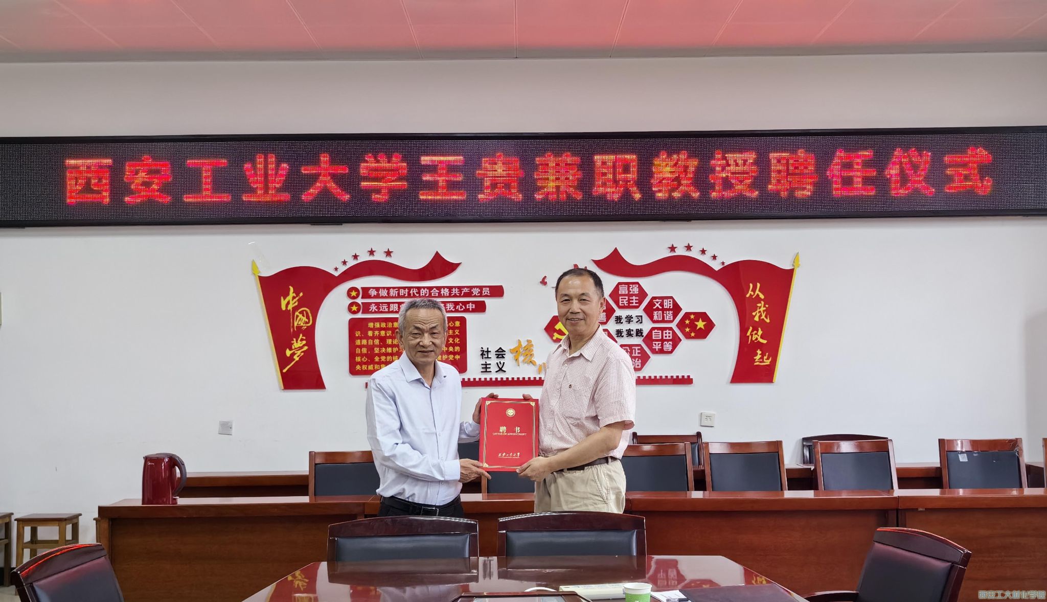 副校长刘卜代表学校为王贵高级研究员颁发了聘书、佩戴校徽。