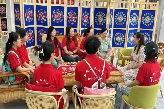 “汉韵羌风,绣梦菌香”宁强特色产业发展成就观察实践队抵达宁强。为感受非遗文化、传承工匠精神,实践队队员们来到了宁强羌绣非遗文化产业园,陕西省人大代表、陕西省非物质文化遗产宁强羌绣省级传承人王小琴师傅热情地接待了队员们。