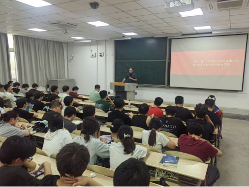 在教1-301召开2025届促就业大会暨2024届就业情况总结汇报会,学院全体党政领导班子、毕业班辅导员以及2025届全体学生参加此次会议。会议由学院党委副书记梁艳峰主持。