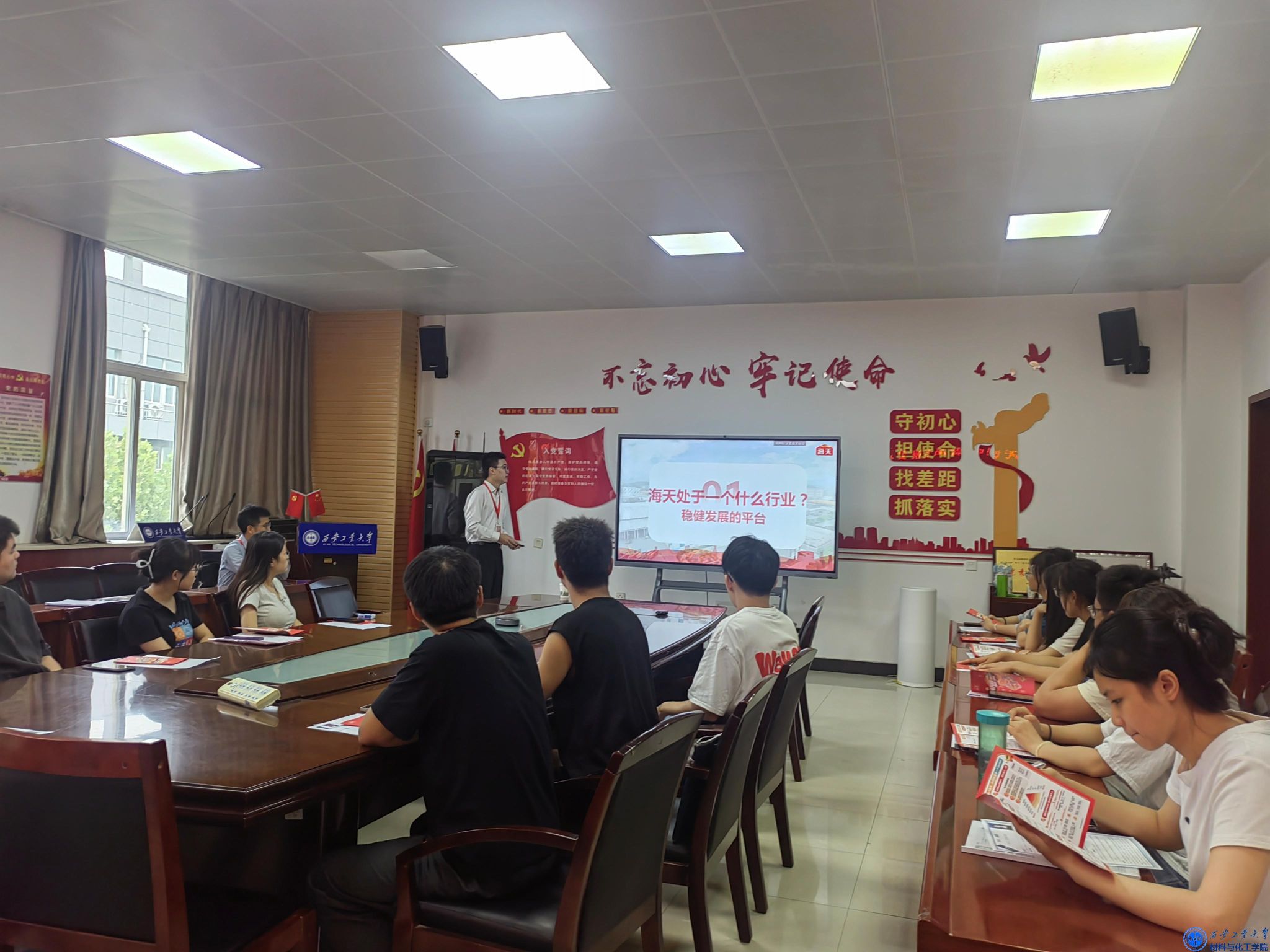 宣讲会上,海天调味食品有限公司人力资源部徐宗恒播放企业宣传视频,让参会学生直观了解到企业的地理位置、生产流水线、产品研发等方面。随后,徐经理以ppt的方式讲解了公司概况、快猫、销售产品、岗位要求、员工成长模式以及人才培养计划等内容,并与参会学生进行互动交流,对于学生的求职需求和职场疑问,徐经理耐心的进行一一解答。宣讲结束后,参会学生现场主动投递简历。本次招聘会共有10名同学投递简历并等待后续的面试环节。会后,徐经理为快猫