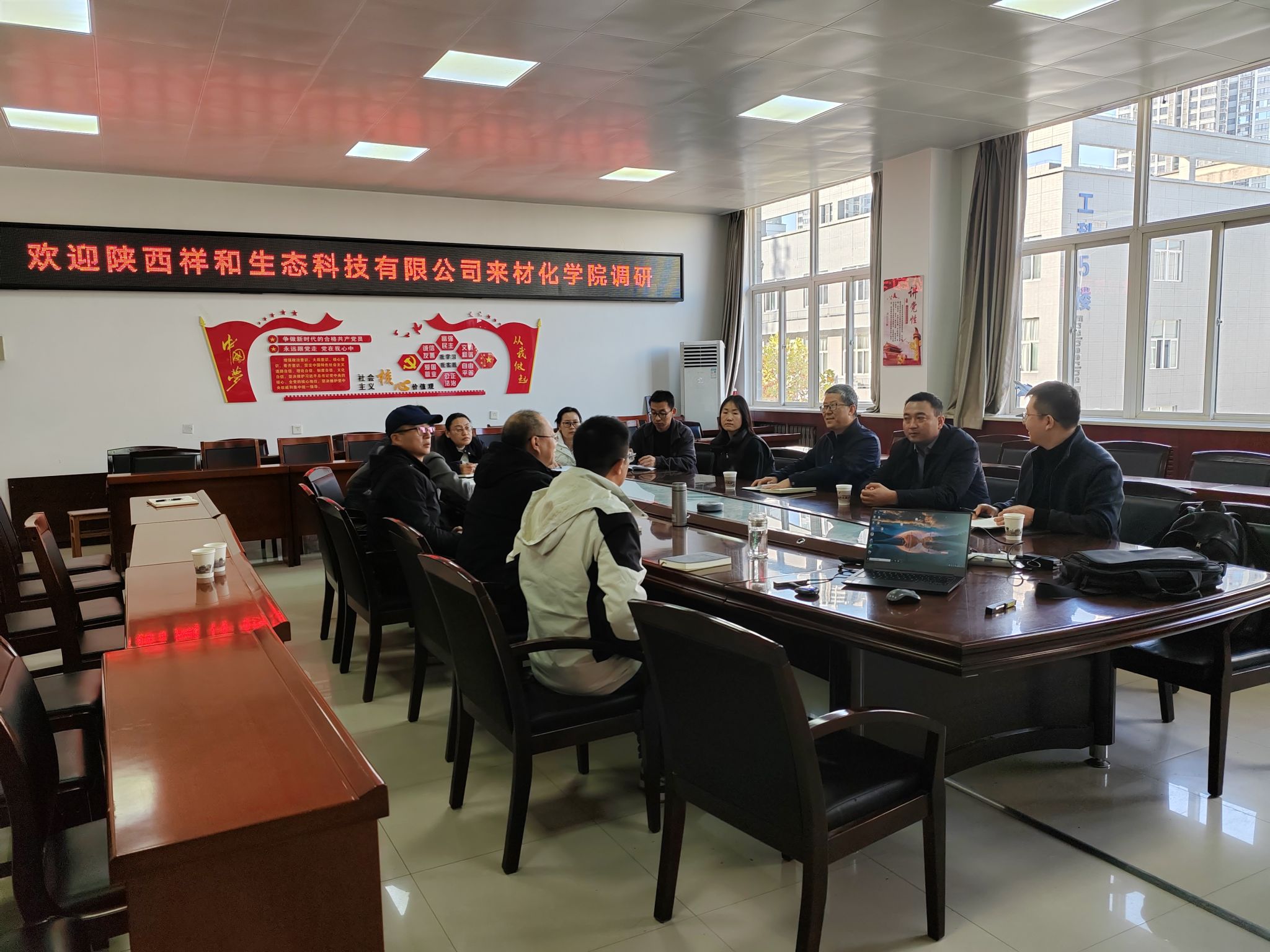 调研交流。本次调研交流会在工3-410召开,延长石油西北化工研究院张伟副院长、袁亚飞工程师及陕西祥和生态科技有限公司杨兴鹏董事长与快猫