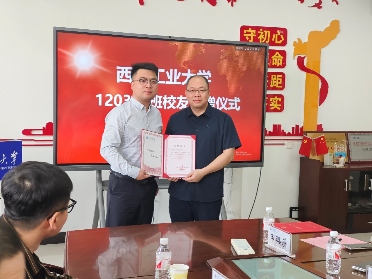 举行了校友捐赠仪式,本次仪式由材化学院党委书记陈卫星主持。120307班校友代表秦亚洲、王康和马海宁作为捐赠人出席,材化学院院长杨忠,材化学院副院长杨巍、王萍,以及材化学院金属专业主任高培虎、教师要玉宏等共同参会。