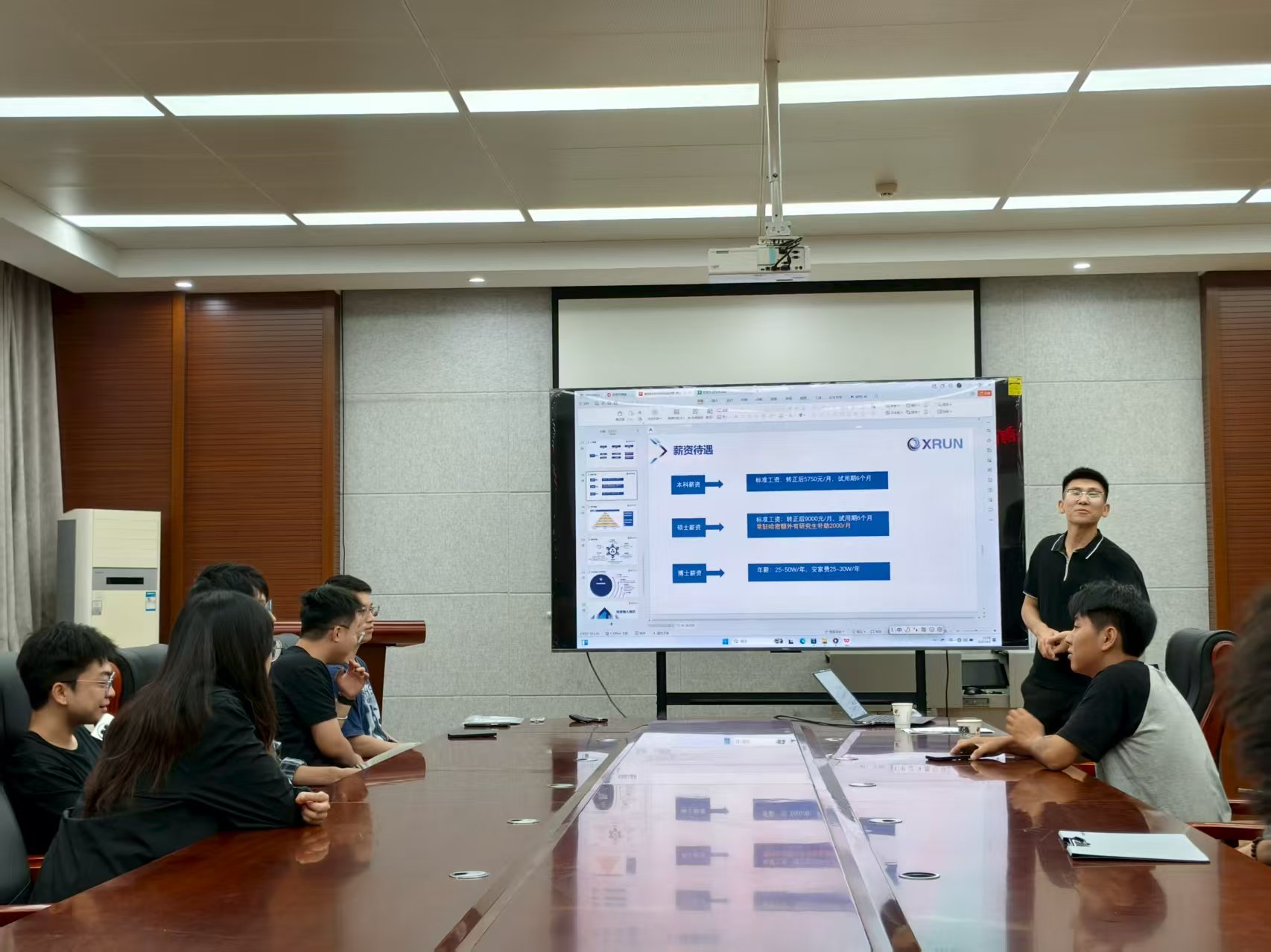 宣讲会上,公司主讲人陈星从公司简介、快猫、员工培养计划、职位晋升、福利待遇等几方面进行了详细讲述。在福利待遇方面,提出公司将为职员提供完善的薪酬制度,保障职员的“六险一金”、各种福利补贴以及优惠政策等,极大地提升公司的吸引力和同学们对公司的认可程度。宣讲结束后,公司现场进行了简历筛选,并组织初次面试。