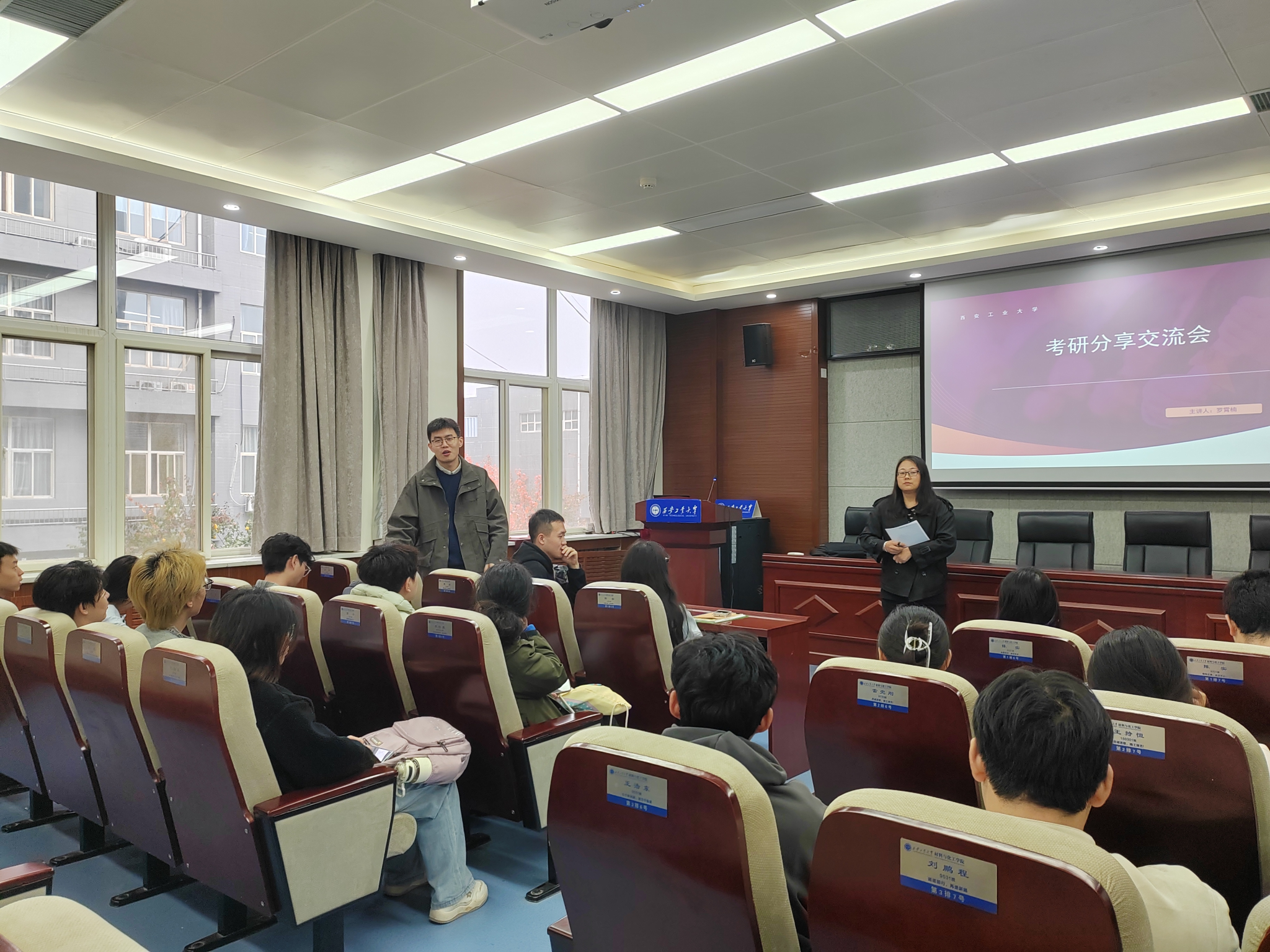 于工4-204精心组织考研经验交流会。本次活动由毕业班辅导员张瑞红老师主持,40余名计划报考本校研究生的2026届学生参与,特别邀请3名本校研一优秀学长学姐担任分享嘉宾。