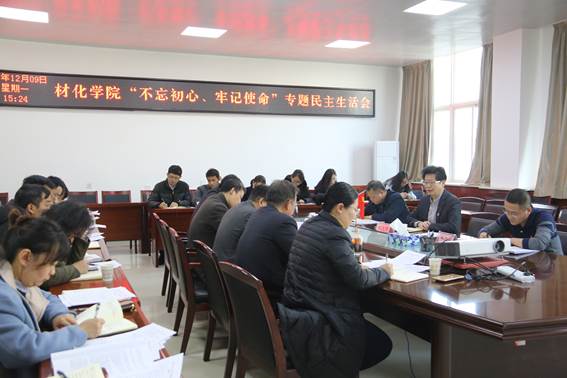 召开“不忘初心、牢记使命”专题民主生活会,会议由学院党委书记惠增哲主持,校党委书记刘卫国参加并发表重要讲话。