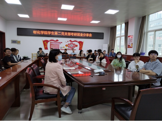 5月10日材化学院学生第二党支部在工三-410举办考研就业分享会。会议由党支部书记刘强主持,支部党员许超、王佳琪、李昊分享了自己的考研就业经验及心得。