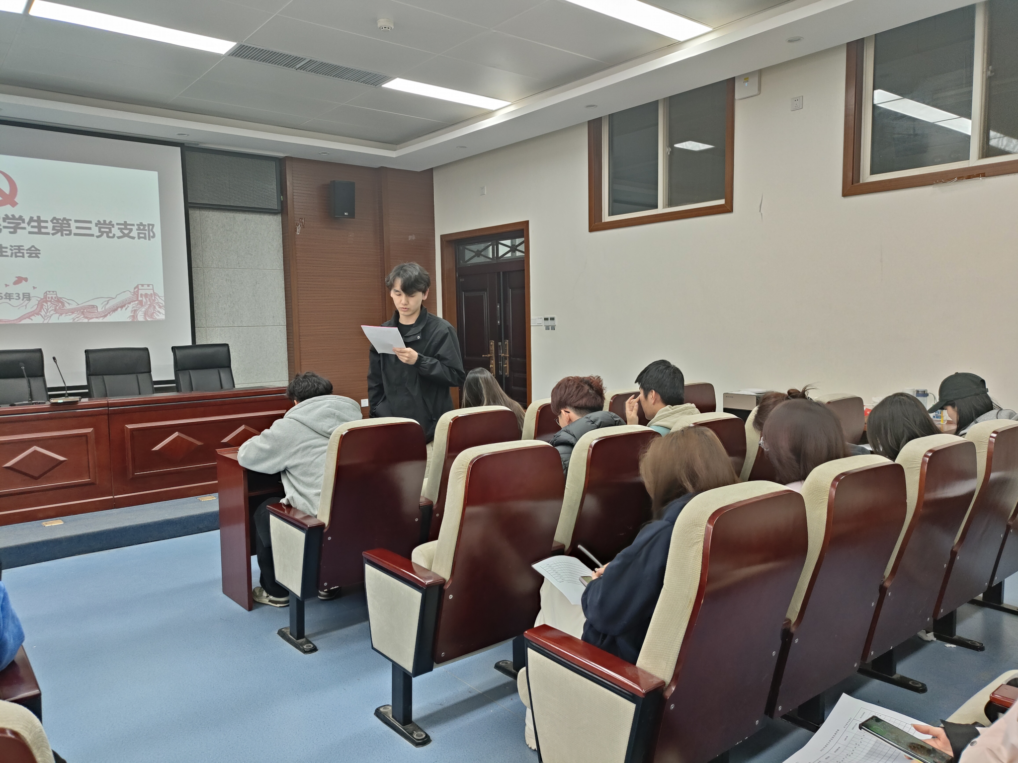 学生第三党支部于工4-204会议室开展组织生活会。支部联系党委委员陈卫星、支部书记段强以及全体党员参加此次会议。会议由支部书记段强主持。