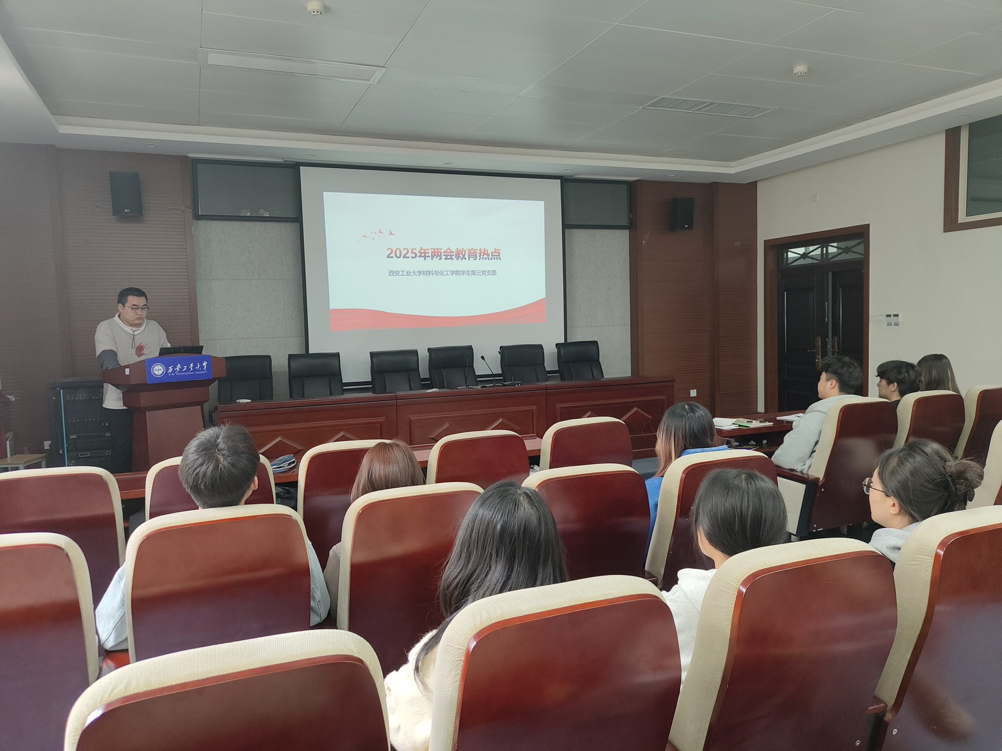 学生第三党支部于工4-204开展学习“2025年两会教育热点”主题活动,支部书记段强以及全体学生党员参加。本次会议由支部副书记秦正洋主持。