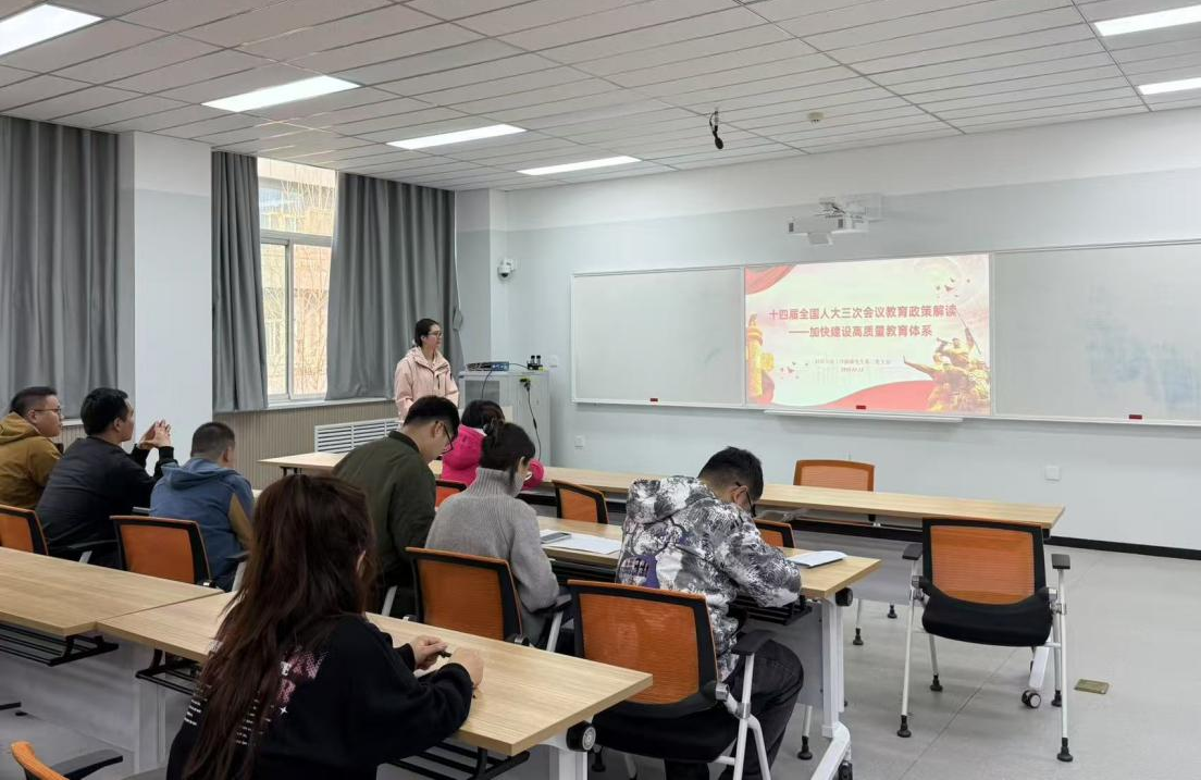 支部书记张启妍首先传达了十四届全国人大三次会议对教育工作的重要部署,强调要紧紧围绕国家需求和群众关切推进教育改革发展,加快从教育大国向教育强国迈进。她指出,高质量教育体系是教育强国的重要特征,其建设需要从立德树人、教育公平、教育创新等多方面发力。随后,组织委员徐嘉珧组织大家学习了关于“加快建设高质量教育体系”的政策内容并展开深入讨论。学生党员一致认为,教育是国之大计、党之大计,高质量教育体系不仅是提升国民素质、促进人的全面发展的有力举措,更是服务国家战略任务、持续提升综合国力的客观需要。大家纷纷表示要以此次学习为契机,深刻领会习近平总书记关于教育的重要论述,将教育政策落实到实际行动中。