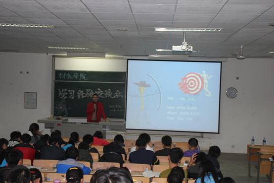 在教2-303举办学习经验交流会,材化学院分团委副书记于海博主持,材化学院13级全体学生和材化分团委全体人员参加。