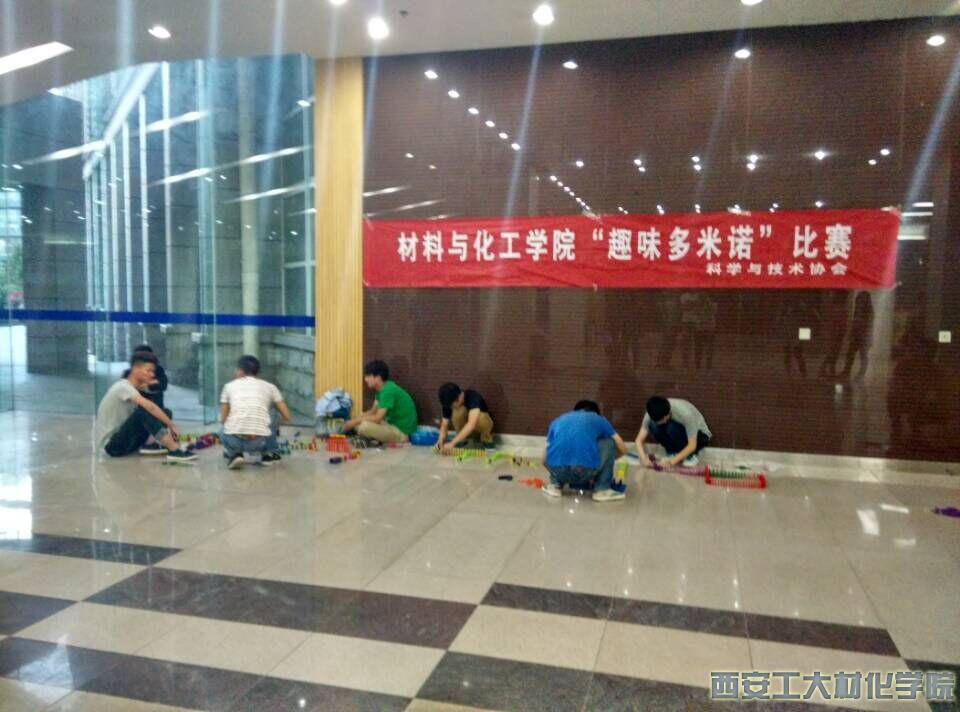 科学与技术协会趣味多米诺大赛第一期于图书馆一楼大厅正式拉开帷幕。来自电信学院、计算机学院和光电学院的三支队伍参加了今天的比赛。