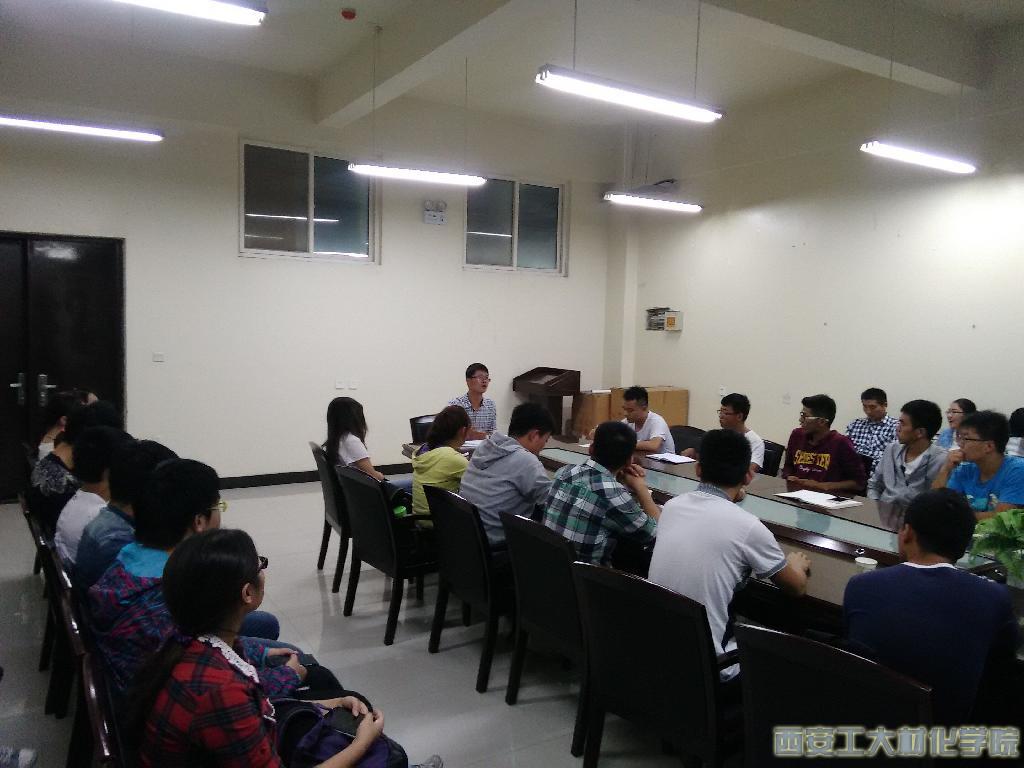 毕业班辅导员王国栋主持,12级高分子专业学生参加。