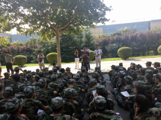 到达训练场地,我们看到新生们正在集合,尽管天气十分炎热、太阳强烈的照射在他们身上,他们仍然认真地听着教官的口号,整齐划一的做着动作。十分钟之后,他们集合完毕,我们开始了宣传工作。首先由快猫