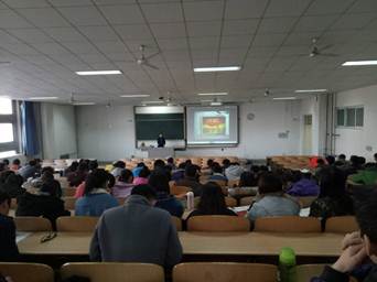 2014级辅导员张瑞红老师在教1-203组织学生召开校园网贷风险防范宣讲会。