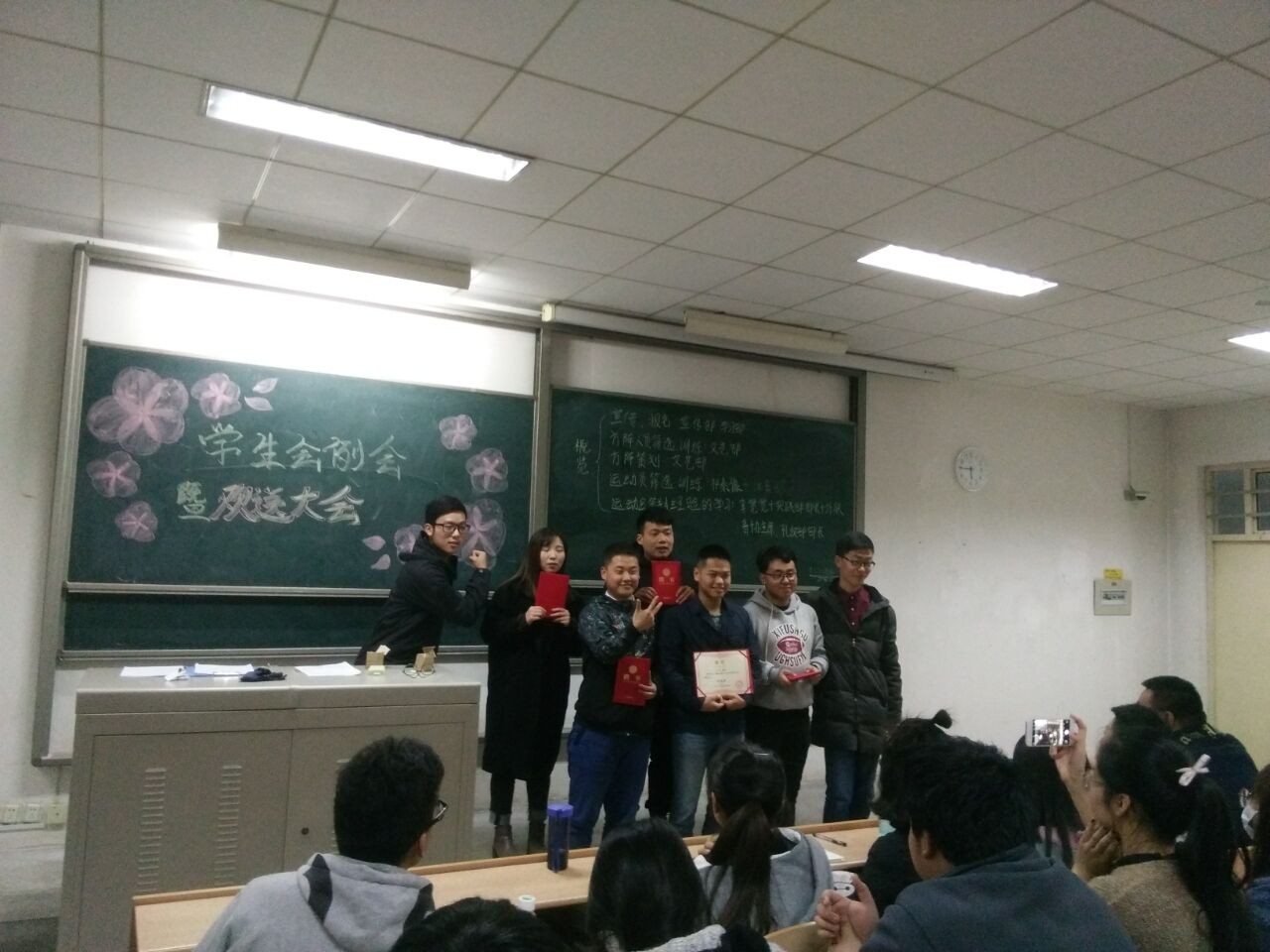 学生会在教2-203举行例会暨欢送大会。本次会议主要目的是对新任主席团的任命和欢送上届主席团,并对运动会等重要工作做出了安排。会议由现任学生会主席李宽宽主持,学生会全体成员参加本次会议。