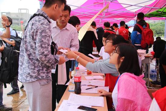 党委组织并安排老师,带领团学科学生干部在经纬广场进行迎新工作。