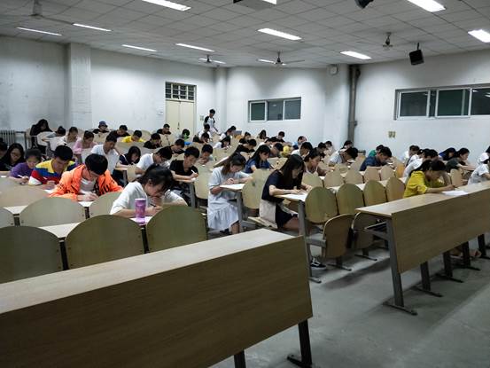 首先,由工作人员安排团员们的入座与签到事宜。随后,学院团委副书记甄子清向大家宣布考场纪律,并对各团员提出希望,他说道,大家是各班推选出的优秀团员,希望大家能认真作答,积极思考,展现出自己的优秀团员素养,为自我争取荣誉。接着,竞赛正式开始。团员们都遵守纪律,充分利用时间,认真作答。监考人员尽职尽责的来回巡视,以确保此次竞赛的公平公正。最后,随着团员们陆续上交答卷,这次竞赛在严肃紧张的氛围中圆满结束。
