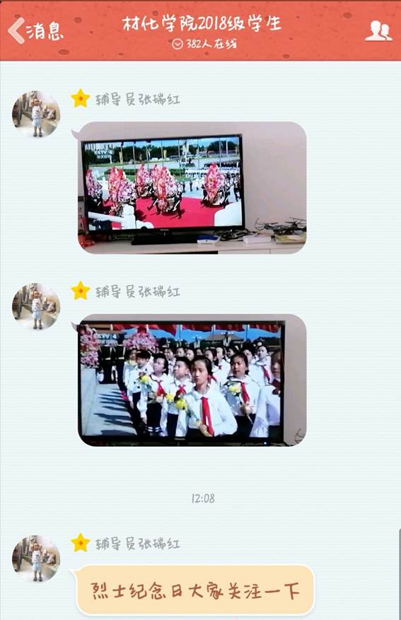 今天是2018年9月30日,是我国第五个烈士纪念日。关于烈士纪念日最新资讯快猫 辅导员张瑞红老师利用网络社交平台及时与2018级全体学生分享了中央新闻视频。