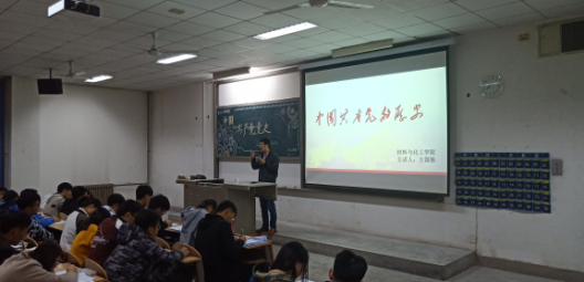于2018年11月1日晚七时在教一-104开展主题为“中国共产党党史”的党课培训,本次党课的主讲人为材化学院辅导员组长王国栋老师。