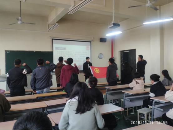 于2018年11月11日在工三-504举行新团员入团仪式。参加本次活动的有学院团委书记段强老师,新发展团员以及新团员所在团支部书记。