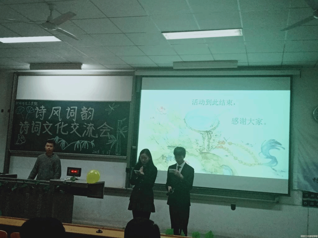 学生会于2018年11月27日下午7时在教一-201举办主题为“亲近诗词,增强素养,敢于交流,展现自我”的诗词文化交流活动。参加本次活动的嘉宾有快猫